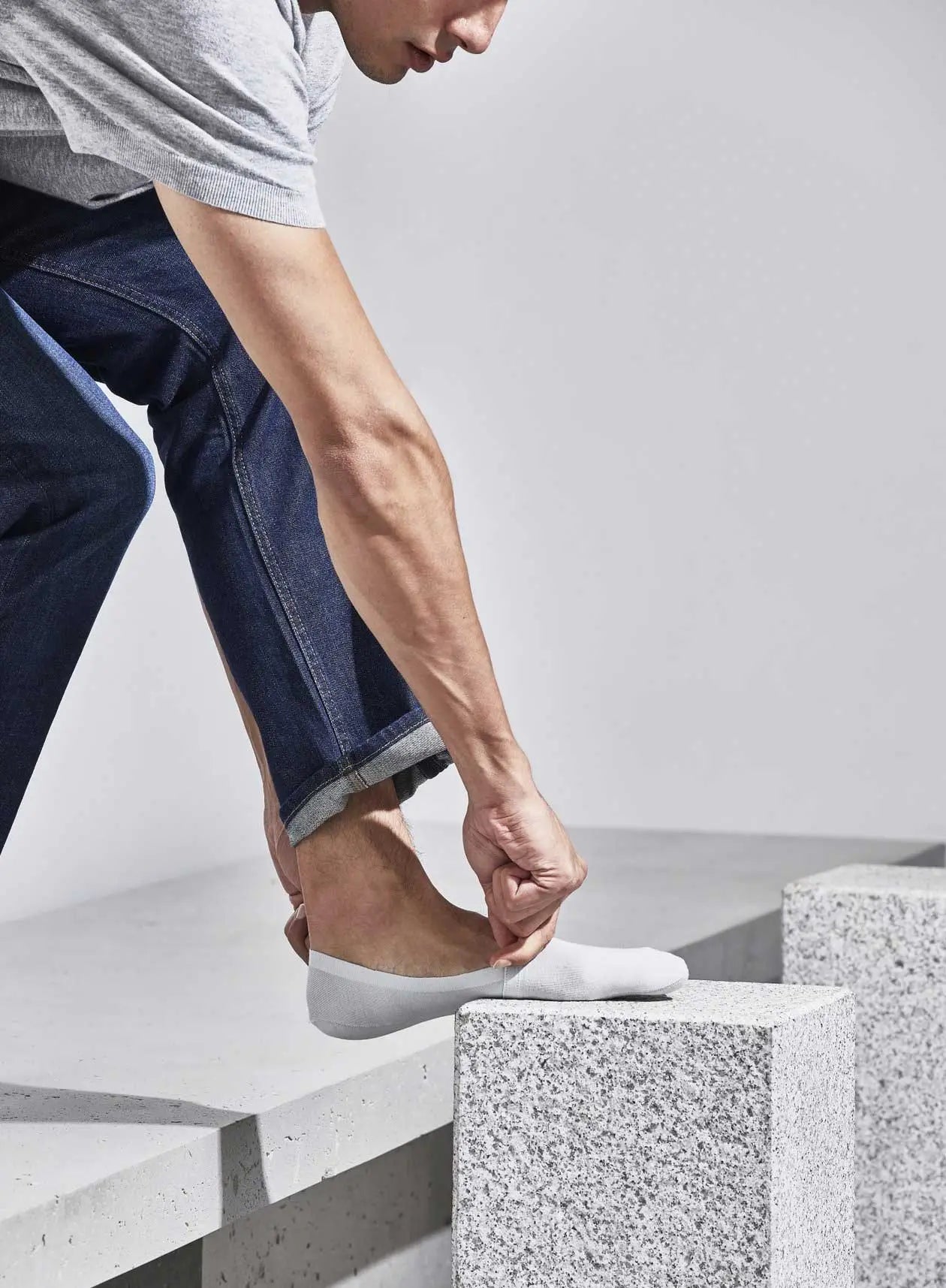 En Minodia diseñamos calcetines invisibles que no se deslizan. Punto.