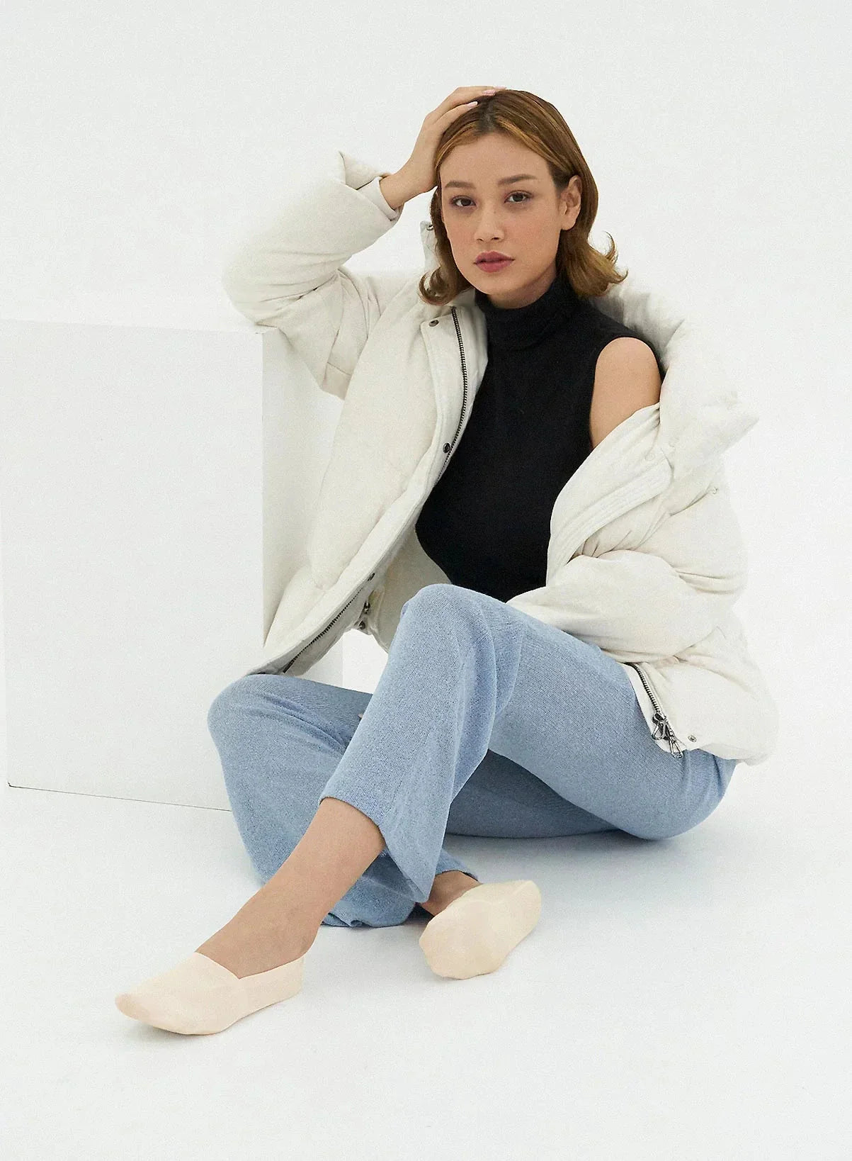 La idea nació de un problema sencillo: las “no-show” que acaban bajo el pie. Creamos un modelo ultra bajo, discreto en cualquier zapato, con una banda adhesiva suave en el talón para que se mantenga en su sitio todo el día.